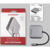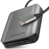 Aluminum 3in1 memory card reader AXAGON CRE-S3C SUPERSPEED with USB 3.2 Gen 1 interface supports all current versions of SD and microSD cards including SDXC and microSDXC with capacity up to 2TB. It also supports CF cards with capacity up to 128PT. Thanks to the modern reversible USB-C connector, you can easily connect the reader to a laptop, phone or computer with a USB-C connector.