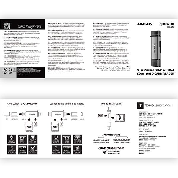 CARD READER USB-C+USB3.2 2SLOT/SD/MICROSD CRE-SAC AXAGON