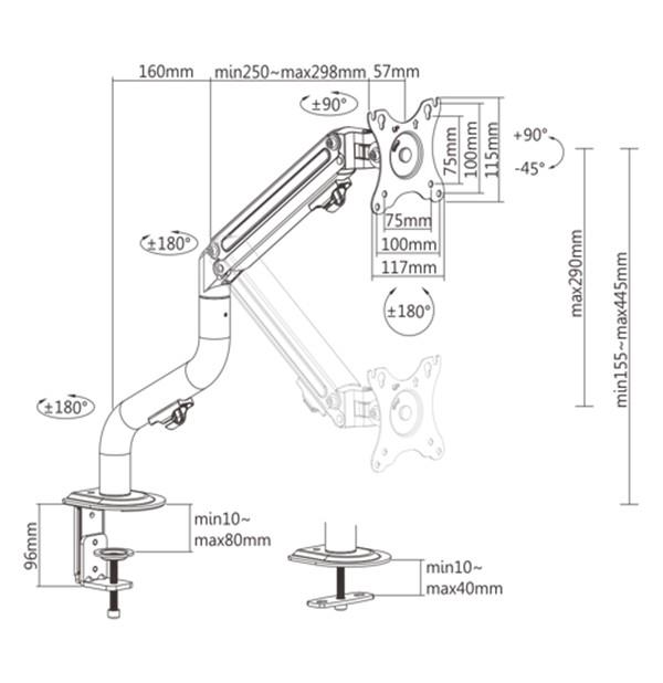 Adjustable desk display mounting arm (tilting), 17”-32”, up to 8 kg