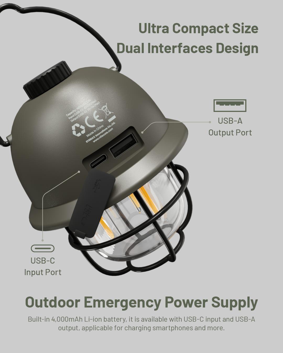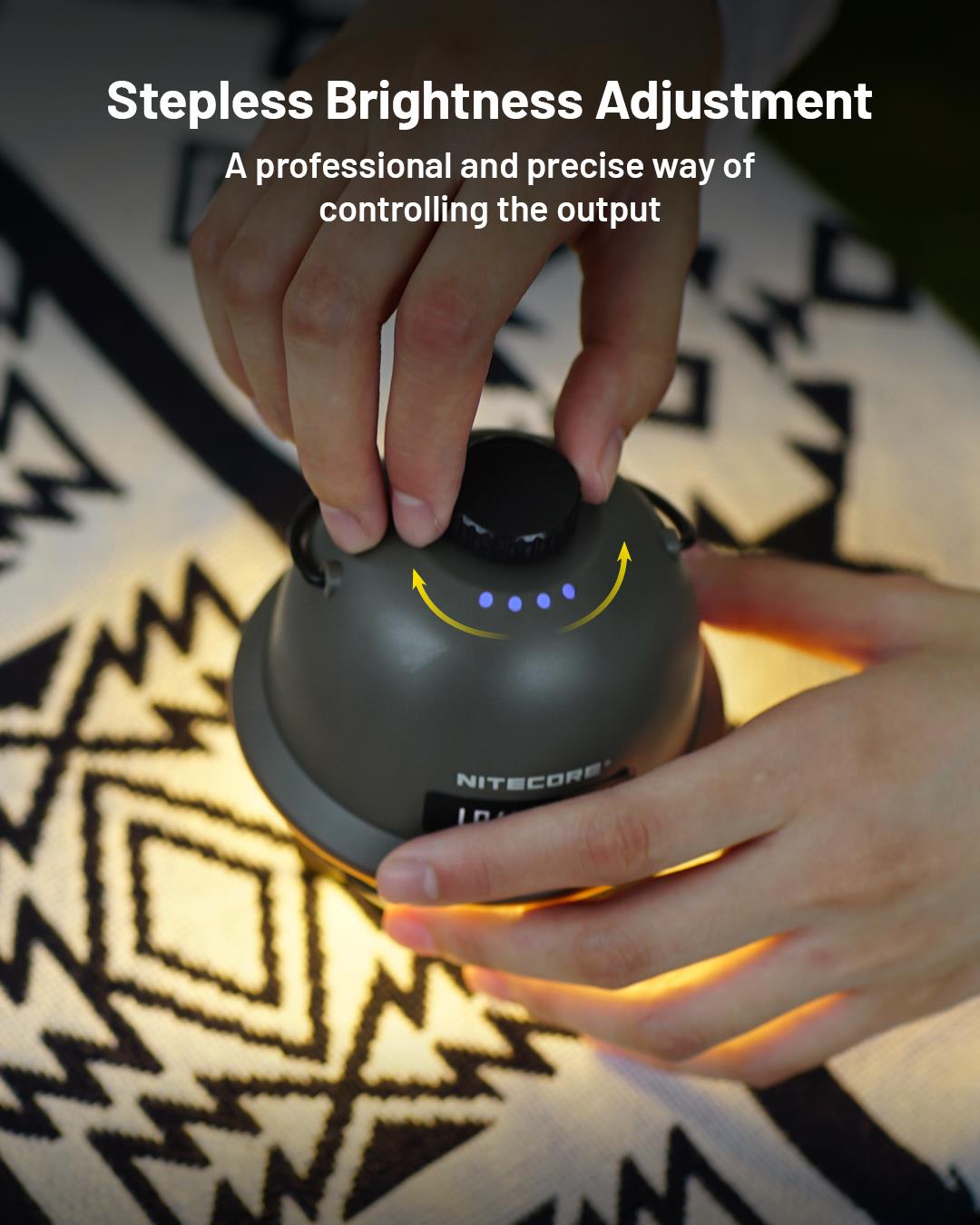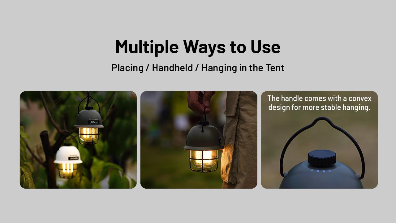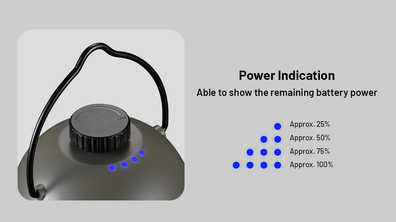 The Nitecore LR40 camping lantern has a maximum output of 100 lumens and is powered by a built-in 4000mAh li-ion battery which is rechargeable by USB-C. The warm and white outputs can be used independently or together, ensuring an output that will suit your camping set-up. All the outputs are operated by the single switch on top of the light, simply press and hold to turn the light on and off. Once on, a single press cycles through the modes and turning the dial will increase and lower the brightness level. In addition to the multiple outputs, the LR40 can be used as a power bank. Beside the USB-C port to recharge the light, sits a USB-A output port for keeping your electronic devices charged. The lamp has an LED power indicator next to the dial switch so you know when it's time to recharge.