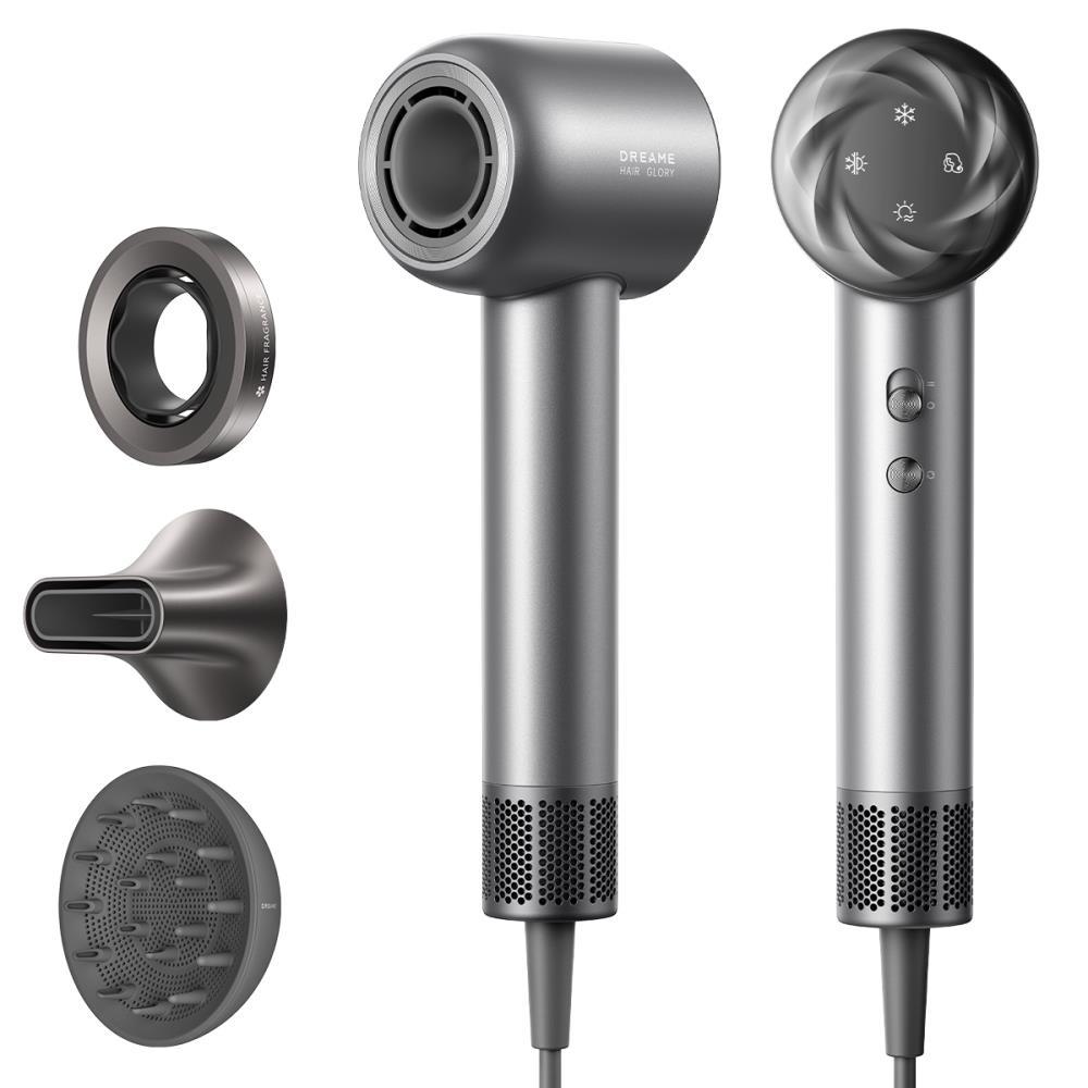 The Dreame Hair Glory Mix High-Speed Hair Dryer is a premium high-speed hair dryer that combines power, style and hair care. Equipped with a digital motor that rotates up to 110,000 rpm, it provides fast drying without overheating. Ionic technology reduces static electricity and adds shine to hair, and multiple temperature and speed settings make it easy to adapt the drying to any hair type.Elegant design