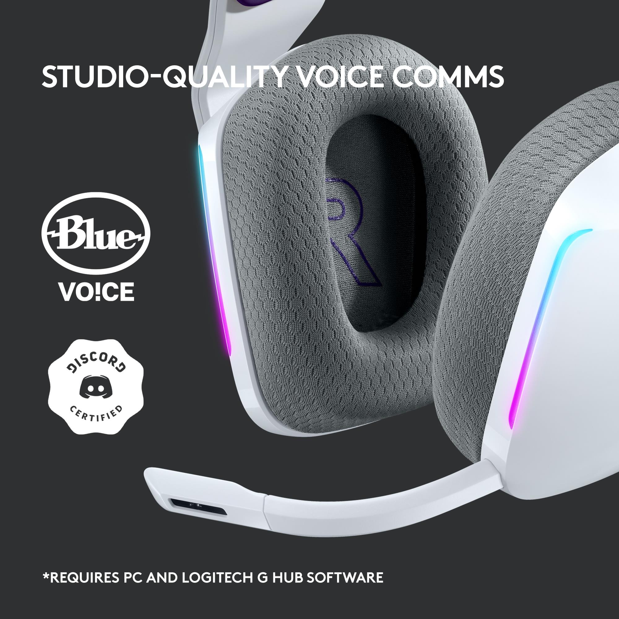 1 May vary based on user and computing conditions. Battery life is based on headset volume set to 50%. 2 Advanced features like DTS Headphone:X 2.0, Blue VO!CE, and LIGHTSYNC RGB are not available on PlayStation or Nintendo Switch. 3 Advanced features require Logitech G HUB software. Download free at LogitechG.com/downloads.