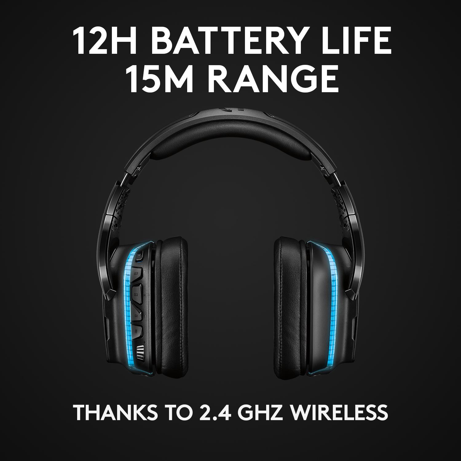 G935 is the ultimate wireless gaming headset, enhanced with the most advanced Logitech audio technology. Hear more detail with large 50 mm PRO-G drivers, made of woven hybrid mesh designed to reduce distortion. LIGHTSYNC RGB lighting is fully customizable and reacts to in-game action on supported games. For maximum immersion, DTS Headphone:X 2.0 surround sound creates precise in-game positional awareness. Hear enemies sneaking up behind you, sense air attacks or special-ability cues, and enjoy the full cinematic experience of your favorite games. Additional gaming features include a large 6 mm flip-to-mute mic, programmable G-Keys on the headset, and the ability to tune EQ settings and more with Logitech G HUB software.