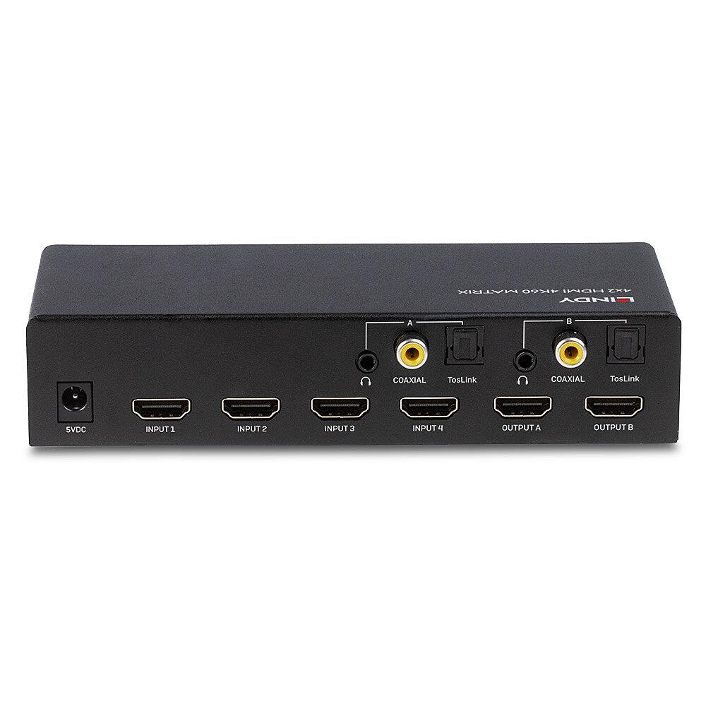 Connect and switch between 4 HDMI source devices and 2 HDMI displays