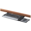 - Mouse tray mounts on right or left side of keyboard tray and stows underneath when not in use