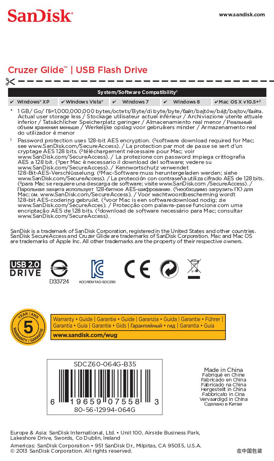 Vendor Homepage: https://shop.sandisk.com/products/usb-flash-drives/sandisk-cruzer-glide-usb-2-0?sku=SDCZ60-064G-B35