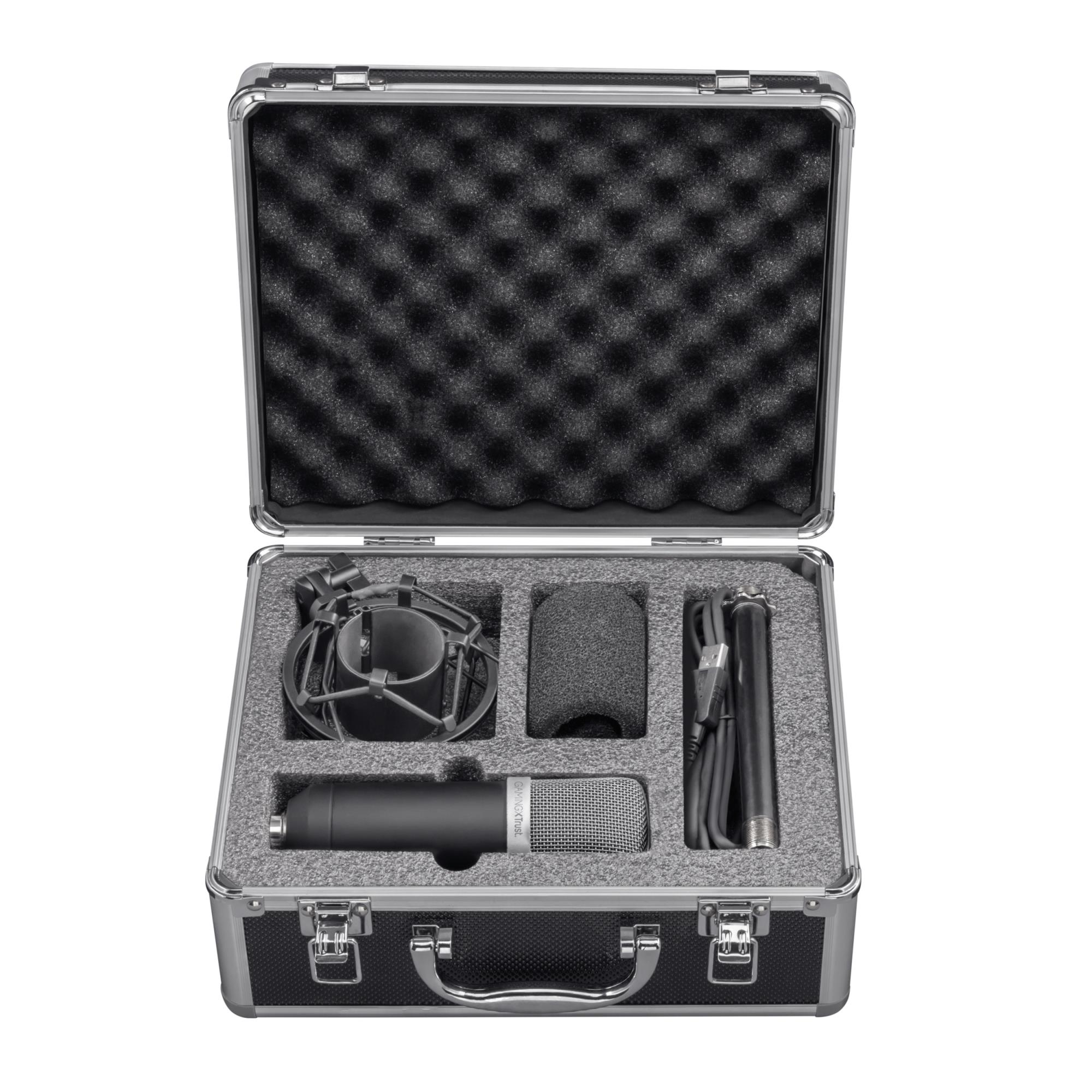 Professional USB studio microphone in flightcase, with high precision cardioid recording pattern; for streaming, podcasting, voice-overs and acoustic music