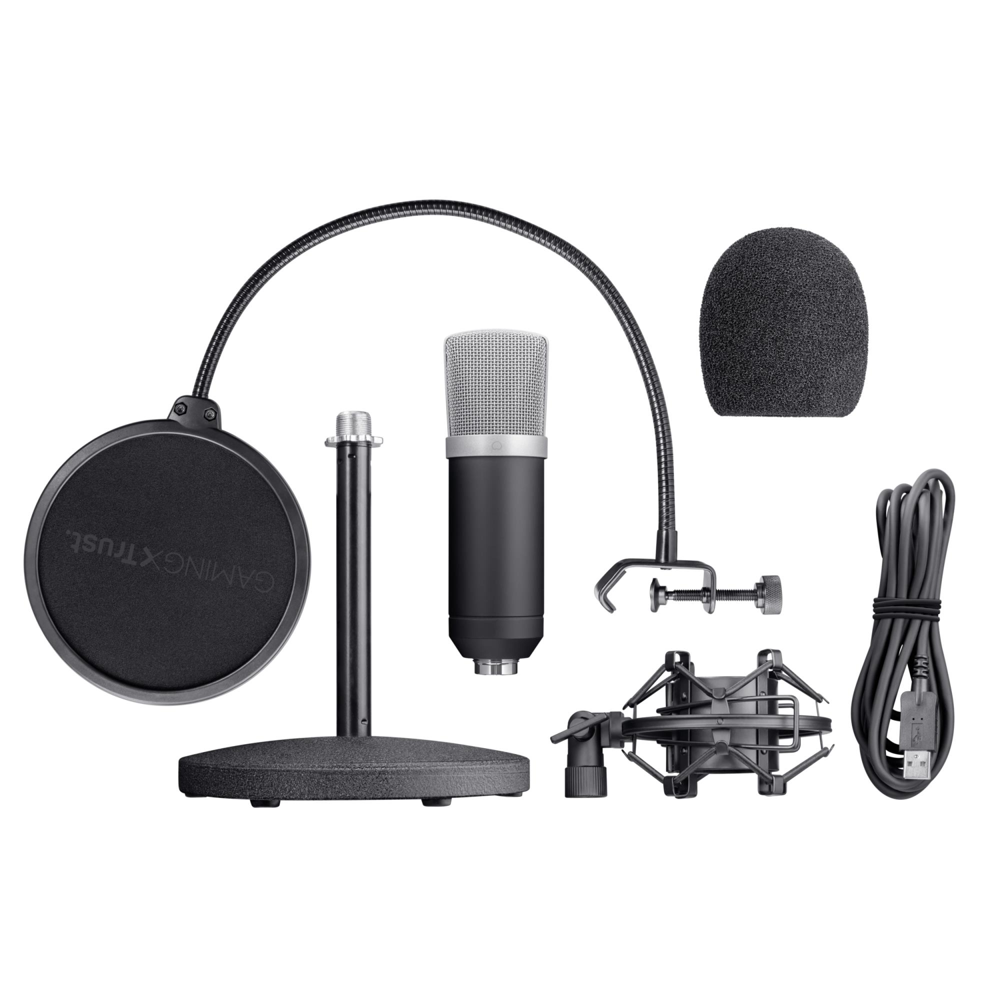 Summary: Trust 21753. Type: Studio microphone, Microphone frequency: 20 – 20000 Hz, Microphone direction type: Cardioid. Connectivity technology: Wired, Device interface: USB. Product colour: Black, Cable length: 1.8 m, Country of origin: China. Power source: USB. Diameter: 4.7 cm, Microphone weight: 300 g
