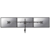 The Neomounts by Newstar desk mount, model FPMA-D550D3BLACK is a tilt-, swivel and rotatable desk mount for 3 flat screens up to 27?. This mount is a great choice for space saving placement on desks using a desk clamp or grommet mount. Neomounts by Newstar's versatile tilt (+45°/-45°), rotate (360°) and swivel (180°) technology allows the mount to change to any viewing angle to fully benefit from the capabilities of the flat screen. The mount is manually height adjustable from 0 to 44 centimetres. An innovative cable management conceals and routes cables from mount to flat screen. Hide your cables to keep the workplace nice and tidy. Neomounts by Newstar FPMA-D550D3BLACK has four pivot points and is suitable for screens up to 27" (69 cm). The weight capacity of this product is 7 kg per screen. The desk mount is suitable for screens that meet VESA hole pattern 75×75 or 100x100mm. Different hole patterns can be covered using Neomounts by Newstar VESA adapter plates. By using an ergonomic mount neck- and back complaints can be avoided. Ideal for use in offices and on counters or in a reception area. All installation material is included with the product.