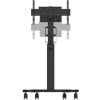 The Neomounts Select FL50S-825BL1 is a mobile floor stand for flat screens up to 75" with a maximum weight capacity of 70 kg. The floor stand is manually adjustable in height (114,5-153,5 cm), as well as the bracket head. A lockable, ventilated hardware compartment with cable opening is included and optional for installation (both portrait and landscape).