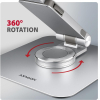 Aluminum stand with 360° rotation for laptops 10" – 17.3". Adjustable height and angle.