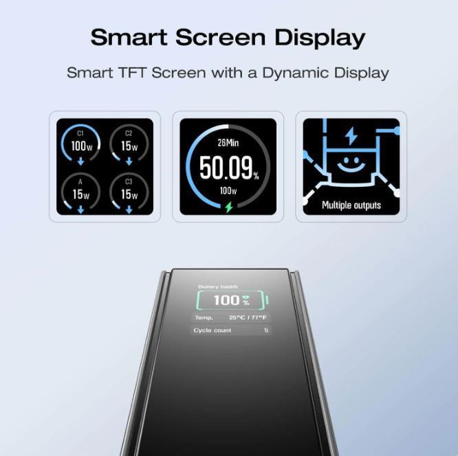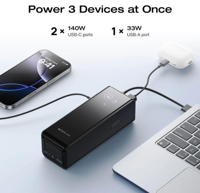 170W Fast Charge: Simultaneous multi-port output up to 170W, supports charging up to 3 devices at the same time. 140W max for single-port charging.