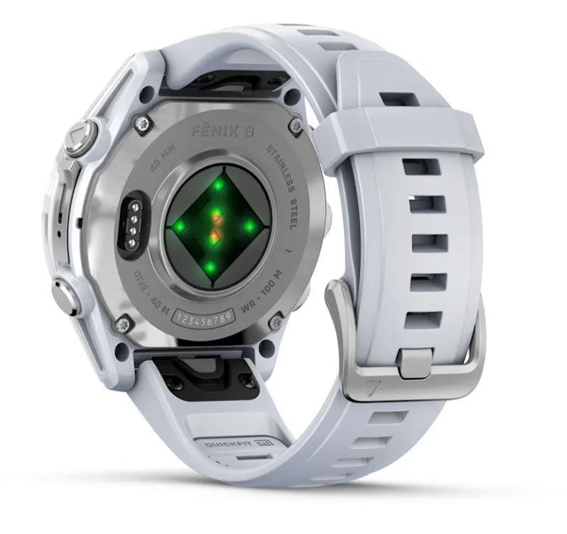 For serious athletes and adventurers who want to push beyond their limits, this premium multisport GPS smartwatch is built to perform — with advanced strength training features, dive capability, an internal speaker and mic for voice features, a built-in LED flashlight and compact styling for smaller wrists.