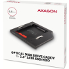 The AXAGON RSS-CD09 internal frame is designed to be mounted instead of the existing 9.5 mm CD/DVD drive. It is designed for 2.5" SSD/HDD SATA drives. You can easily replace the optical drive in your laptop with a hard drive.