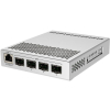The CRS305 is a compact yet very powerful switch, featuring four SFP+ ports, for up to 10 Gbit per port. The device has a 1 Gbit copper ethernet port for management access and two DC jacks for power redundancy. The device is a very sleek and compact metallic case without any fans, for silent operation.