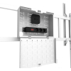 Designed with a sturdy structure, the MOVE Go XL offers the perfect solution for large and ultra-wide 105" (touch) screens. The floor stand offers manual height adjustment in 2 preset positions, ranging from 129 to 139 cm, ensuring optimal viewing heights. For extra security, the screen can be fixed in place by locking the brackets using a padlock (not included). Additionally, a multimedia shelf (front and back mountable) and lockable, ventilated hardware compartment with cable opening are included and optional for installation.