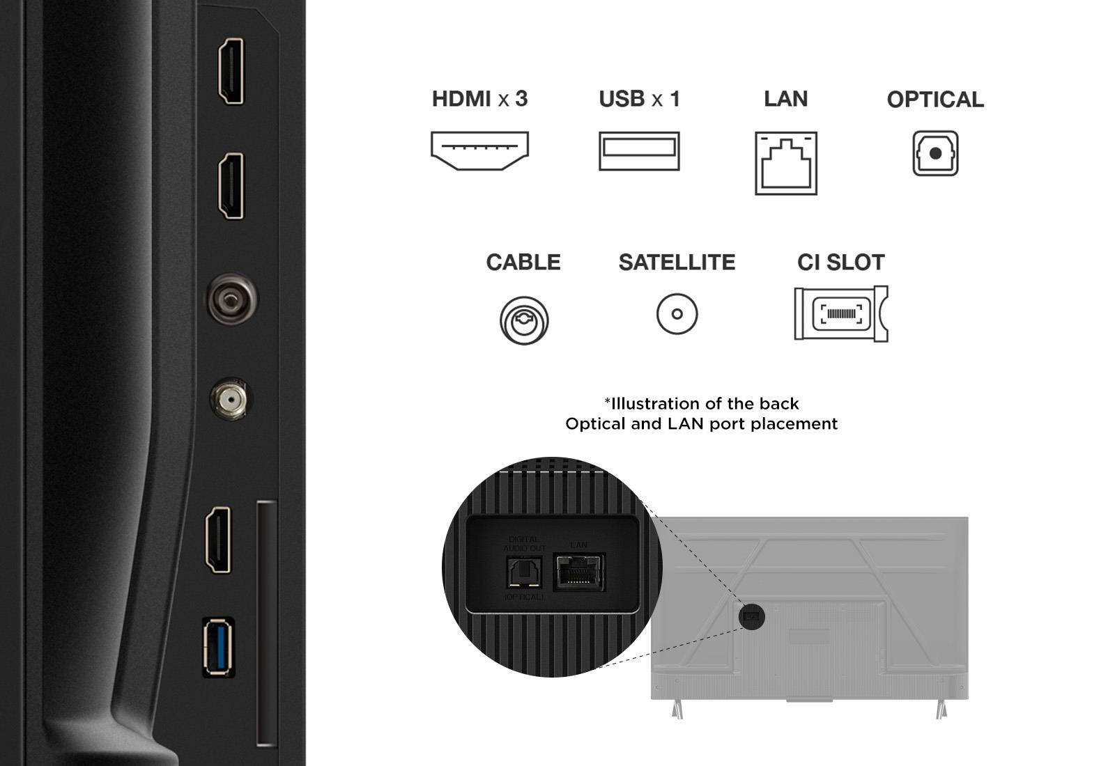 Featuring high quality speakers, you can enjoy immersive Dolby Atmos sound quality or pass it to a TCL sound bar.