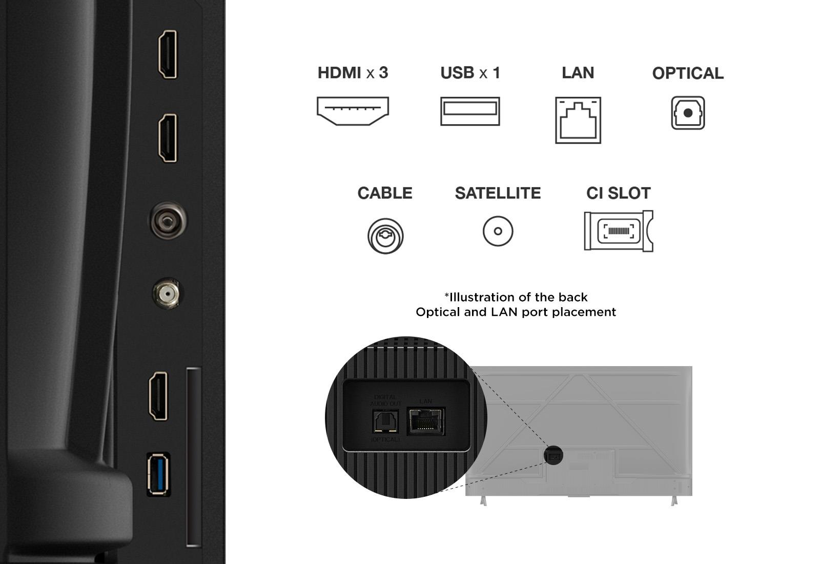 Featuring high quality speakers, you can enjoy immersive Dolby Atmos sound quality or pass it to a TCL sound bar.